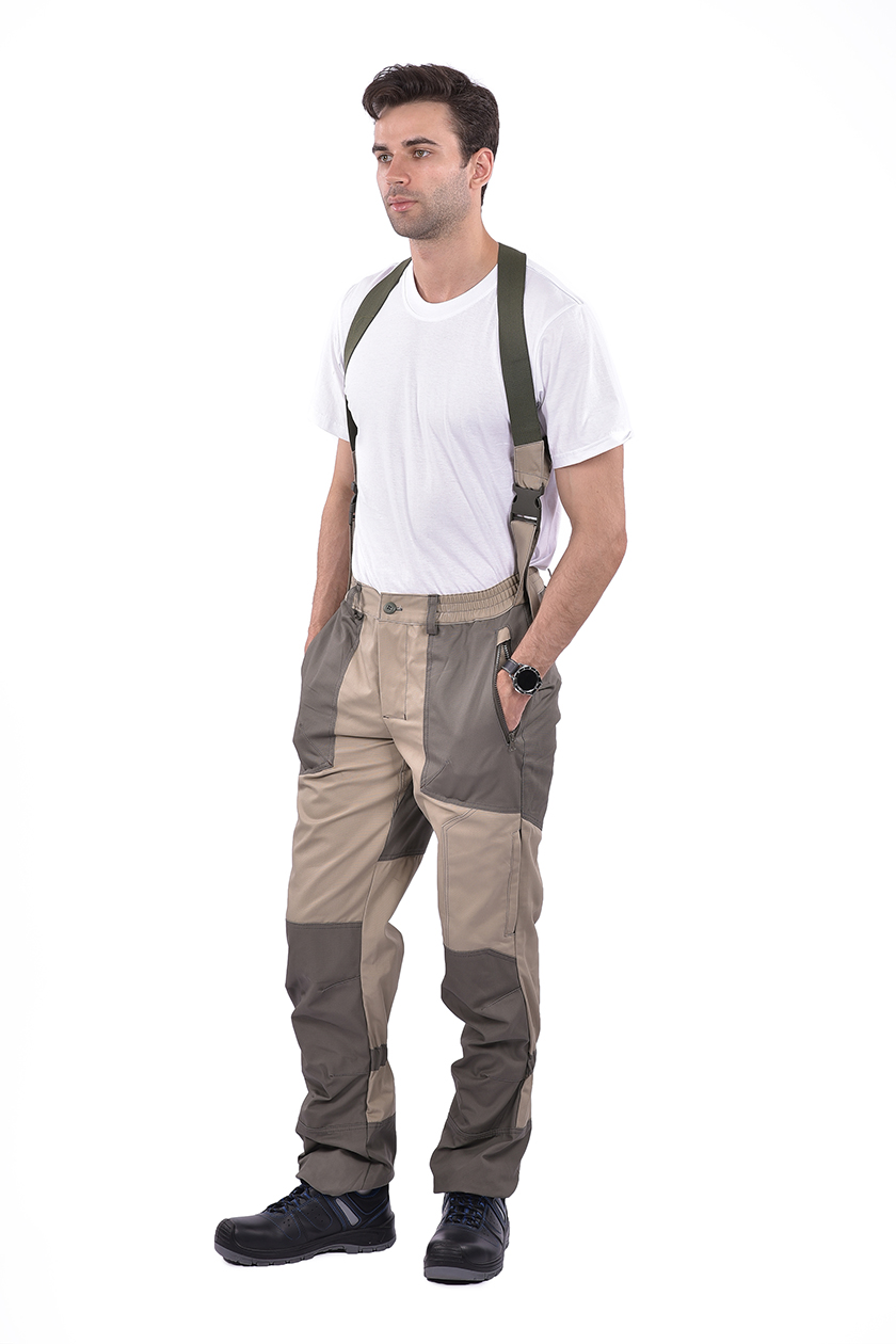 ➠ Брюки: бретели на резинке, крепление к брюкам на пряжку-фастекс. Карманы на молнии: 2 боковых и 1 в области левого колена.