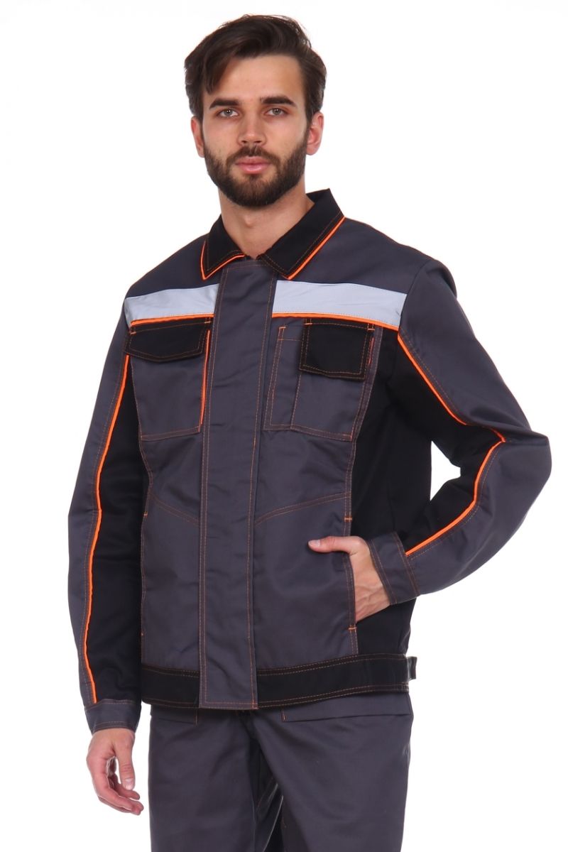➠ Куртка прямого силуэта. Центральная бортовая застежка на молнию с ветрозащитным клапаном. На верхней части полочек расположены 2 нагрудных кармана с клапанами и отделениями для ручек. На нижней части полочек расположены 2 кармана в рельефных швах. Рукава с манжетами, ширина рукава регулируется патой на контактной ленте.