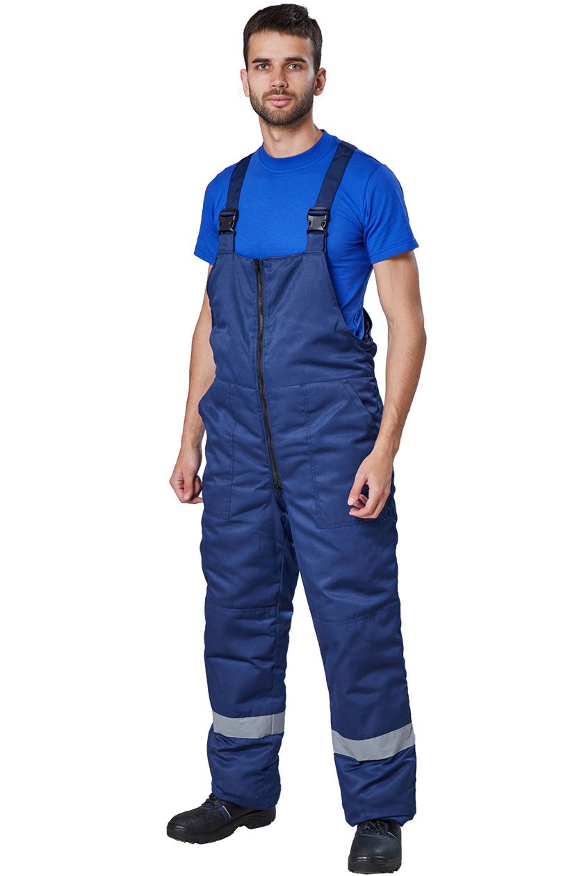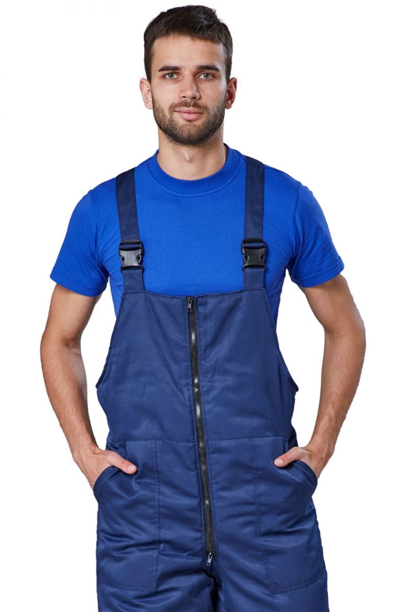 Полукомбинезон утепленный с отрезным нагрудником по линии талии спереди. Застежка на молнию. Два накладных кармана с наклонным входом.